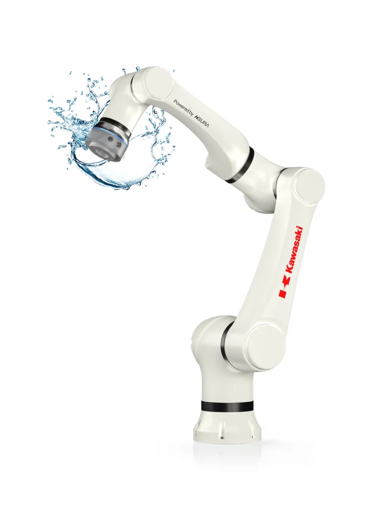 The CL Series combines the best of both worlds: powerful and fast industrial-scale automation and the maximum protection and benefits of collaborative robotics. Thanks to a user-friendly interface, automating production lines has never been easier. With four models in the CL series offering payloads and reaches of 3kg/590mm, 5kg/800mm, 8kg/1300mm and 10kg/1000mm, there is a perfect solution for every scenario. Each model is flexible to mount, requires minimal space and is IP66 rated. The proprietary safety architecture and numerous safety positioning, speed, torque, zones, limits and collision detection features allow the CL Series cobots to work easily with human operators.Kawasaki Robotics CL105 IP66 powered by NEURA